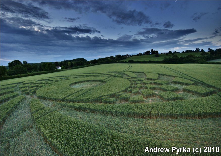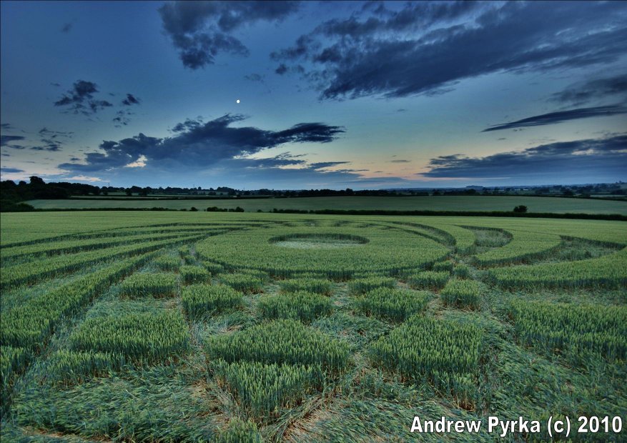 Wunderschöne, stimmungsvolle Bilder der Formation gibt es wieder von Andrew Pyrka unter http://www.cropcirclewisdom.co.uk/2010season/june25th22010/uftoneye.html