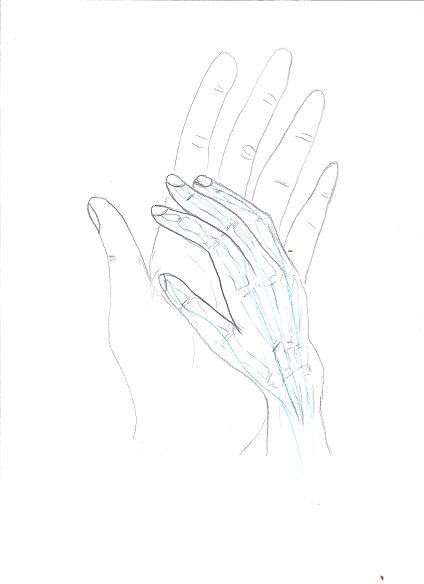 Igura about an experience with one of the short Grey beings: "During the experience I had the opportunity to take his hand in my hands and look at it very closely. The hand became slightly transparent, so that I could see the bones and blood vessels and then another network (don't know if it was nerve tracts), which began to shimmer bluish."