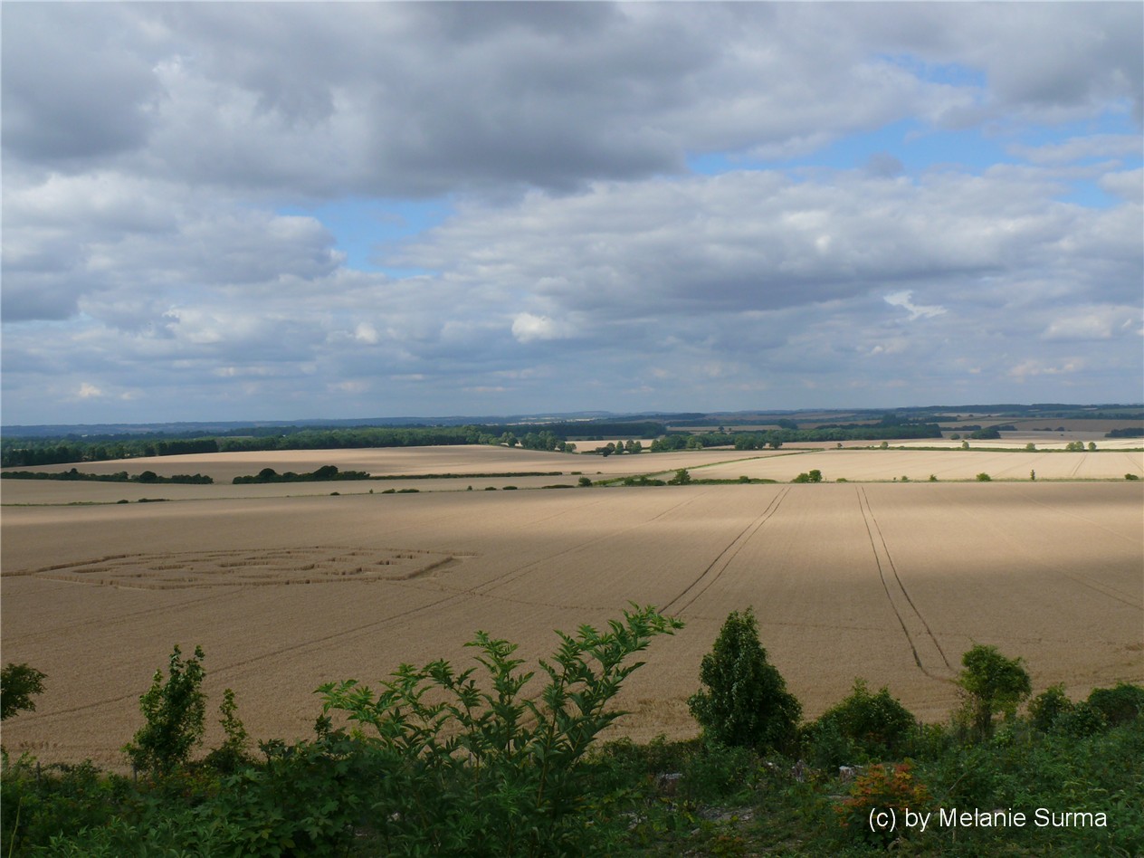 Zuerst einmal wegen der Wahl des Orte, an welchen diese Formationen auftauchen. Liest man nur im Internet davon, kann man sich nicht viel drunter vorstellen. Man fragt sich, warum gerade in Wiltshire, England, die meisten Formationen entstehen. In Wiltshire angekommen erübrigt sich diese Frage jedoch. Das Land selbst ist relativ dünn besiedelt. Soweit das Auge reicht sieht man eine bezaubernde Landschaft mit sanften Hügel und riesigen, goldfarbenen Feldern. Darüber spannt sich ein Himmel, dessen Weite einem buchstäblich den Atem raubt. In der Landschaft verstreut finden sich zahlreiche frühgeschichtliche Stätten wie die sechs weißen Pferde, Old Sarum, Long Barrow, Avebury, Silbury Hill etc. Die gesamte Umgebung strahlt etwas Friedvolles und Magisches aus. Es herrscht eine ähnliche Atmosphäre wie bei anderen „UFO – Hotspots“ z.B. in New Mexico, Arizona und Mexiko. In Deutschland kann man sich nicht vorstellen, jemals ein UFO zu sehen. In Wiltshire rechnet man quasi jeden Augenblick damit, eines um die Ecke biegen zu sehen. Man spürt einfach ihre Anwesenheit, auch wenn sich das für Leute, die nicht persönlich mit dem Phänomen vertraut sind, seltsam anhört.